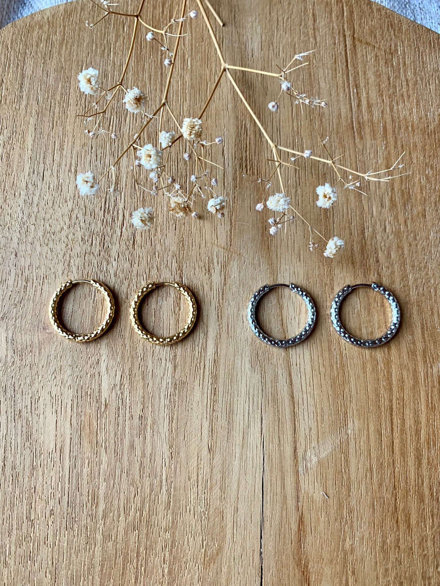 ✨Créoles rondes texturées en acier inoxydable, hypoallergénique et solide ✨